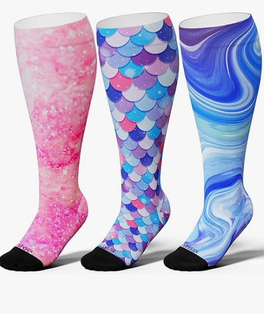 3 pair compression socks for women plus size are viscose made from bamboo, a natural and skin-friendly material that is very soft and comfortable. Plus Size compression socks wide calf are an ideal choice for pregnant women, elderly people, nurse.